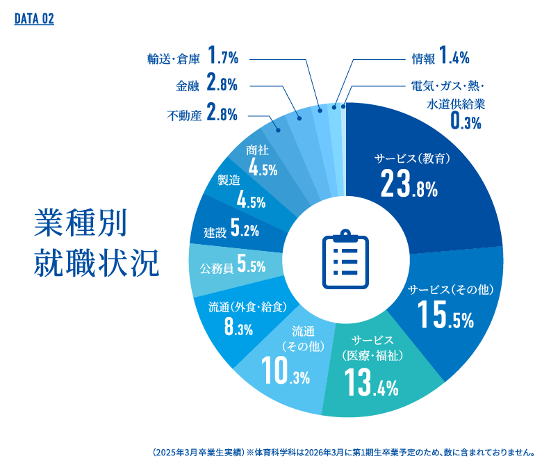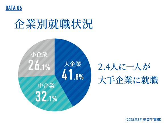 各業界・業種で活躍する卒業生に続き、毎年多くの学生が希望の就職を実現しています。