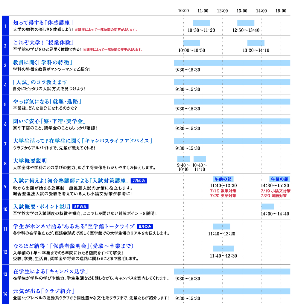 時期により内容が変わるオープンキャンパス。
