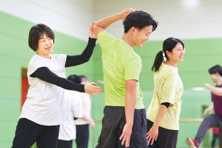 地域のダンス教室にボランティアとして参加し、実際に経験することにより、指導現場での気付きを重視していることも相馬ゼミの特徴です。教員をめざしている学生も多く、積極的に学外に出かけ、こどもたちとのコミュニケーションを図っています。「単に技術を伝えるのではなく、教える側と教わる側の関わり方を体感的に学んで、それぞれの研究活動に生かしてほしい」と相馬教授。キッズダンスの指導現場において、指導者の振る舞いや伝え方、こどもたちの反応を観察。卒業研究として、指導前後のアンケートで意識の変化を調査するなどの学びを深め、地域社会に貢献できる運動指導者の養成をめざします。