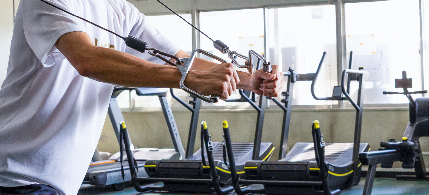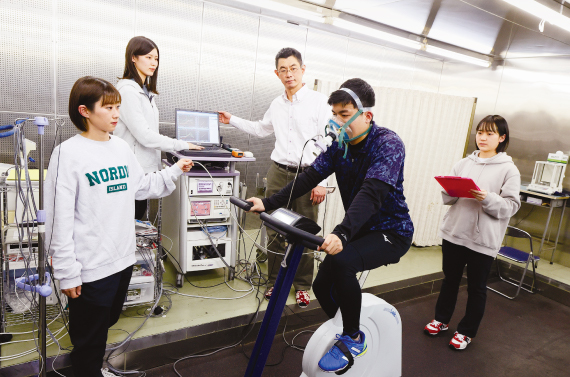 仲教授のゼミでは、トップアスリートを対象に筋力トレーニングの効果を分析し、パフォーマンスや体力の向上・健康づくりに役立てられるかを探究。また、近隣のスポーツクラブや自治体で中高齢者向けの健康教室を実施し、体力測定、運動メニューの作成、アドバイスなどを通して、将来、運動指導の現場で役立つスキルを身につけていきます。ゼミ生のほとんどは「健康運動指導士」の資格をめざしており、スポーツクラブ、公共の運動施設など幅広い分野で活躍できるスペシャリストを養成しています。