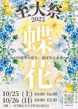 蝶々が花に止まりに来るように、至大祭という会場(花)にいろいろな蝶(来客)が止まりに来ますように。目に止まりますように。