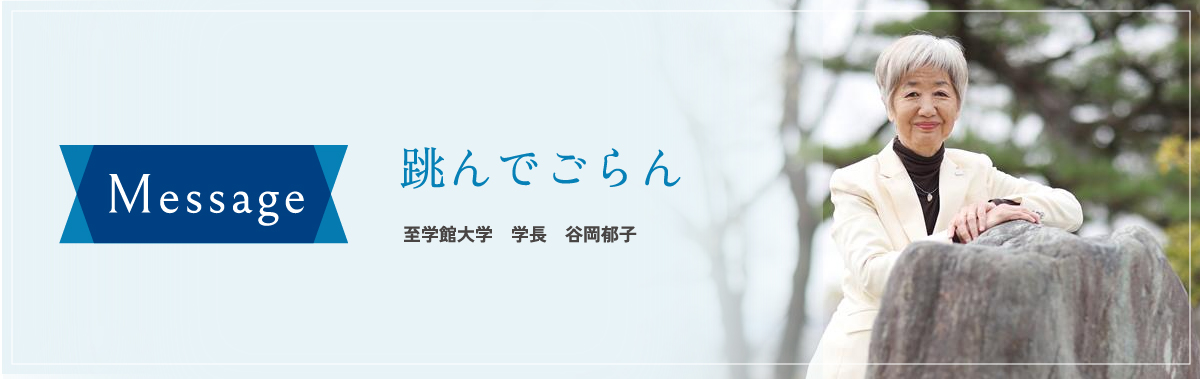 自信がない?当然だよ。知ってることは自信にならない。やってみて、できたことが自信になる。そこに到達するまで、何度でも失敗するのがフツーでしょ?至学館の学生は失敗しまくって、そして夢に届く。 自分が見つからない?当然だよ。落とし物じゃないのだから、自分って創るものだよ。感じて、考えて、悩んで迷って、トライして創るもの。きっと出来るさ。 私は奇跡や魔法は信じないけど、若者の可能性は信じる。ほとんど奇跡ってことがこの大学のキャンパスで起きるものを見てきたもの。汗と涙と笑顔を出し惜しみしない毎日と、支え合う仲間たちがいれば100%青春! 跳んでごらん。落ちて来たら受けとめてあげるからね。